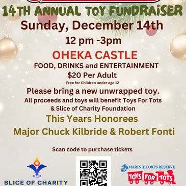 🎁 Bring a new, unwrapped toy — all donations benefit Toys for Tots and Slice of Charity Foundation.